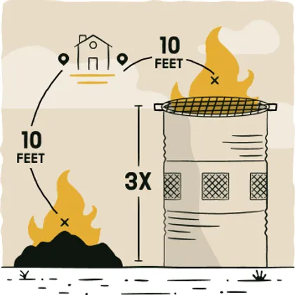 You need a clearance of at least 10 feet of gravel or dirt around the area. You will water this and the surrounding area when extinguishing the fire.