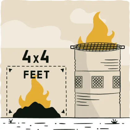 Keep your burn pile to a maximum of 4 feet by 4 feet and add additional debris only after the fire has died down.