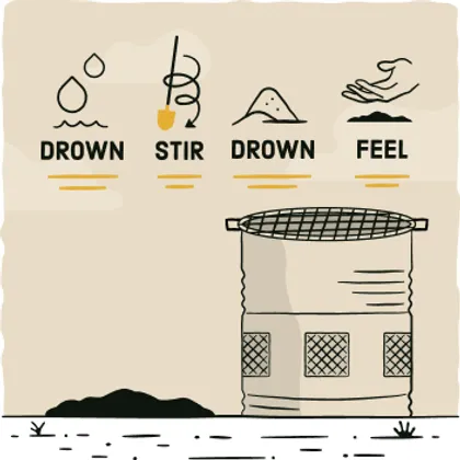Continue adding water, dirt, and sand until all material is cool.